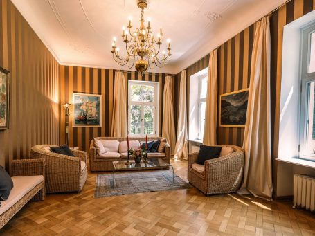 Im ersten und zweiten Obergeschoss befinden sich die 7 einladenden Zimmer, jeweils mit eigenem Bad. Alle Zimmer der Villa haben ihren ganz individuellen Charme und variieren in Größe, Dekoration und Ausblick. Da es sich um ein historisches Gebäude handelt, können wir leider keine barrierefrei zugänglichen Zimmer anbieten.